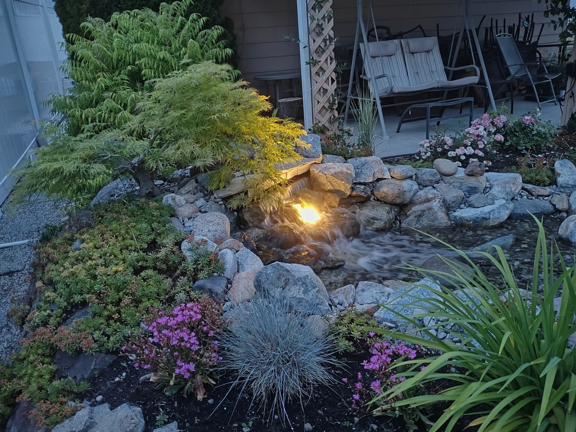 What makes Hayley and Jeff's Landscaping stand out in Grand Forks? Every single water feature we create is unique. We don't believe in one-size-fits-all; instead, we meticulously design and tailor each project specifically to our customer's vision, considering everything from custom lighting and plant selection to size and flow. Your dream, our craft.